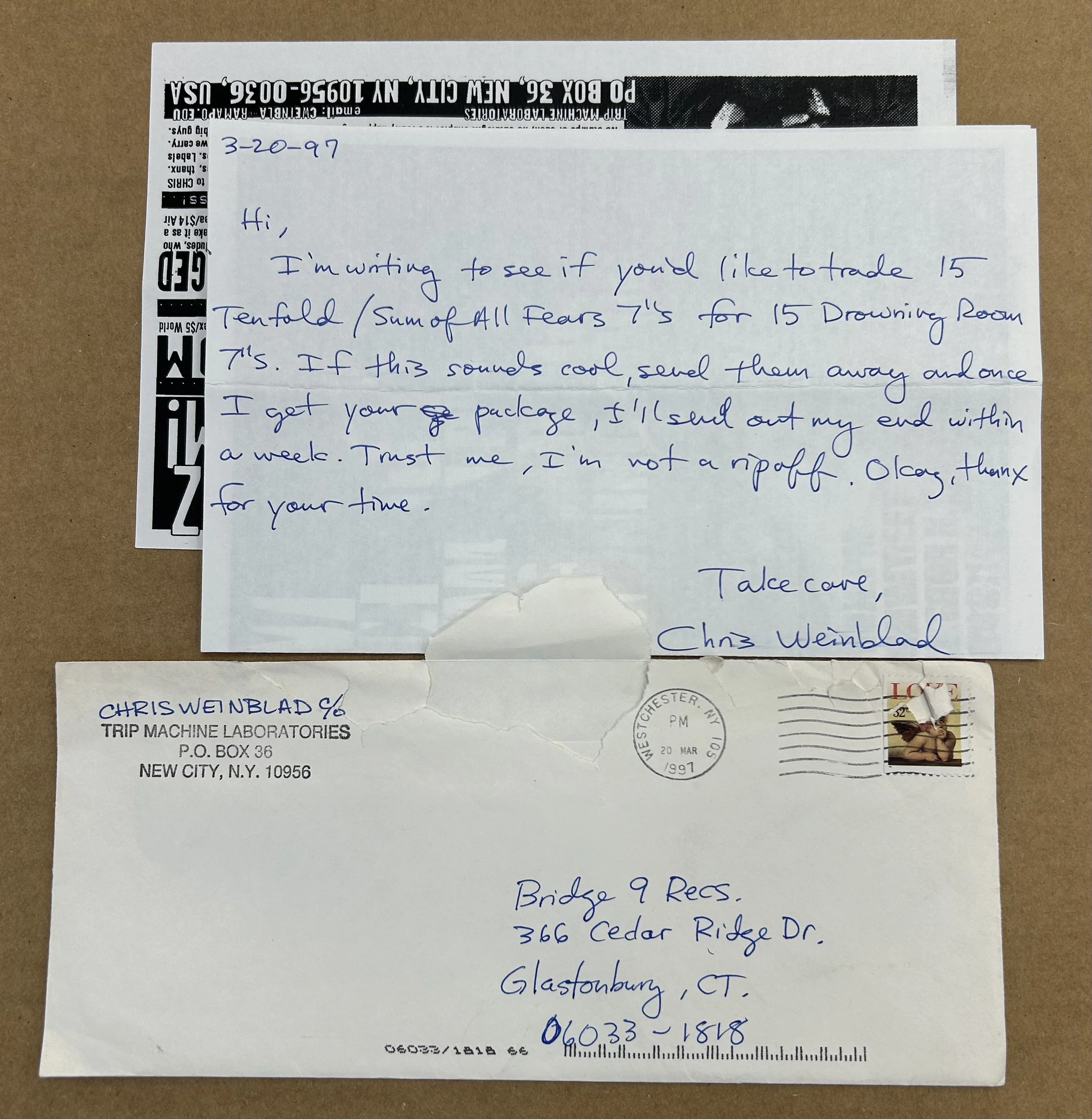 The first release (and first vinyl record) that appeared on Bridge Nine. Tenfold had recently lost their original singer, and guitarist Neal St. Clair had taken over on vocals. The band wanted to get something new out quickly to showcase their new lineup, so they recorded three new songs and paired them up with two songs from their friends in Sum Of All Fears. The 7" was officially released (and most of the green copies were sold) at a show that both bands played on August 3rd, 1996, at the CT Bike Exchange in Bristol, Connecticut.